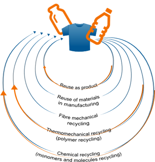 Compared to other circular and recycling solutions chemical recycling enables the restoration of polymer and in case of textiles also fibre quality, facilitating closed-loop recycling and the replacement of primary polyester materials with secondary ones.